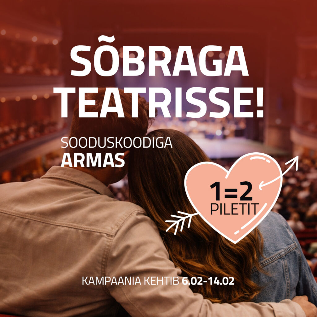 Parimad teatrimälestused sünnivad koos. 6.-14. veebruarini kutsume Sind teatrisse koos kellegagi, kes on Sulle armas, sest kahekesi on teatris lihtsalt parem. Võta sõber, kallim või keegi, kellega tahaksid pärast etendust veel pikalt arutada ja tule teatrisse kahekesi ühe piletihinnaga. Kaks piletit ühe hinnaga (2=1)Etendustele:• „Unistuste saar” • „Ühiskondlikult kahjulik element” Kuidas soodustust kasutada?1️⃣ Vali endale sobiv etendus ja istekohad2️⃣ Lisa […]