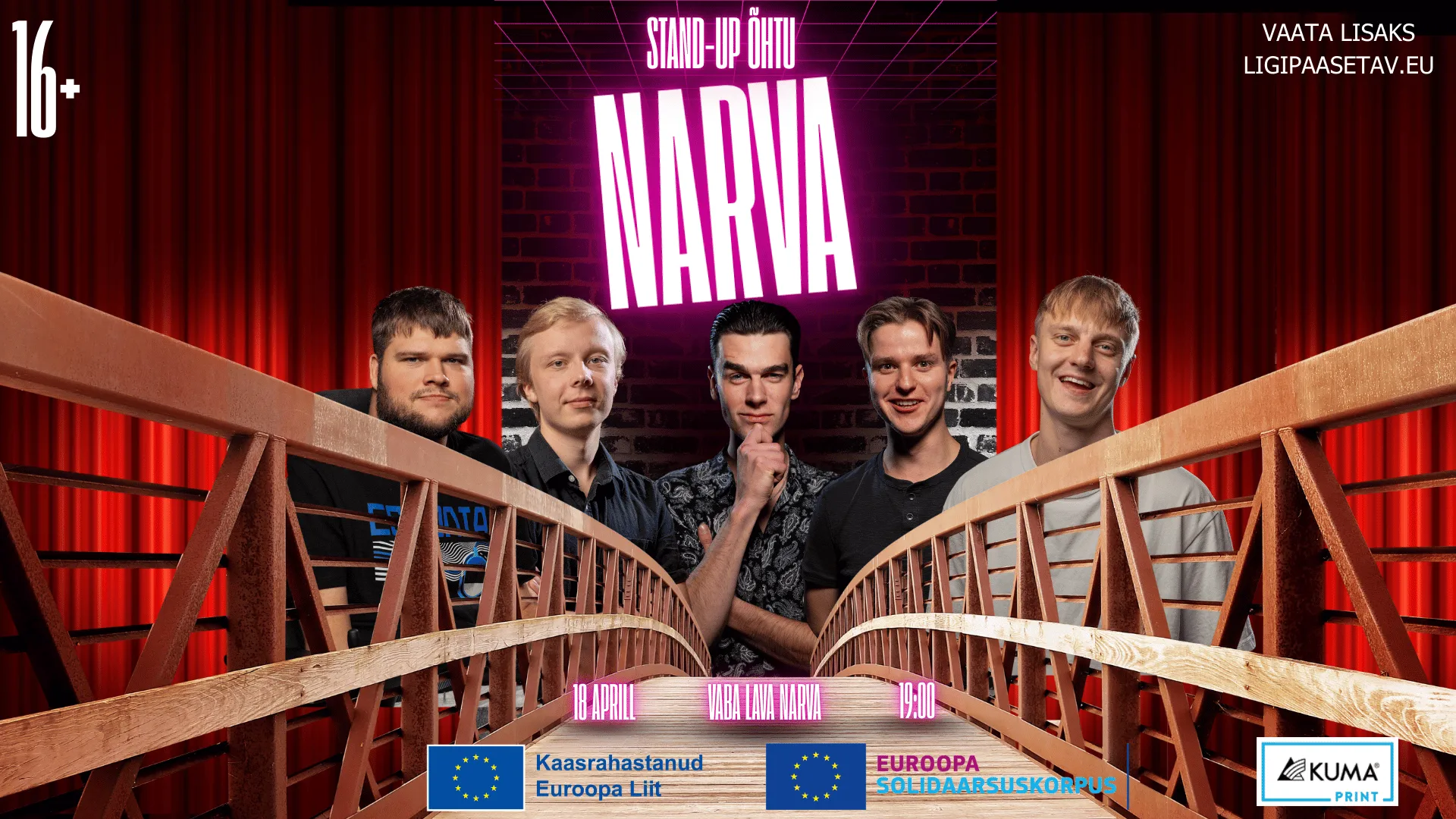 Narva Vaba Lavas toimub 18. aprill Euroopa Liidu poolt kaasrahastatud projekti “Ligipääsetav stand-up” raames tasuta stand-up õhtu, mille eesmärk on viia kaasaegne huumor ka nendeni, kes tavaliselt kelleni see tavaliselt ei jõua. Narva ja teie moderne Vaba Lava sobivad selleks ideaalselt – oodata on ainulaadset ja meeldejäävat õhtut!